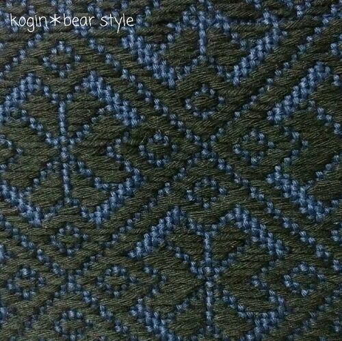 全身に紗綾型のこぎんを使った総刺しこぎんクマがうまれました(左)。 青系のさわやかな色味で小さなベアのパーツにのぞく模様が斬新です。 おはようございます。こぎん刺しのテディベア、ベアグッズ製作の、kogin*bear style こひろです。 紗綾型は日本の…